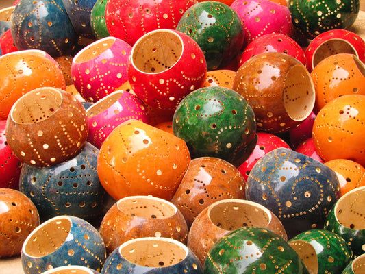 Teelicht Windlicht aus Kalebasse (Flaschenkürbis) | verschiedene Größen und Farben